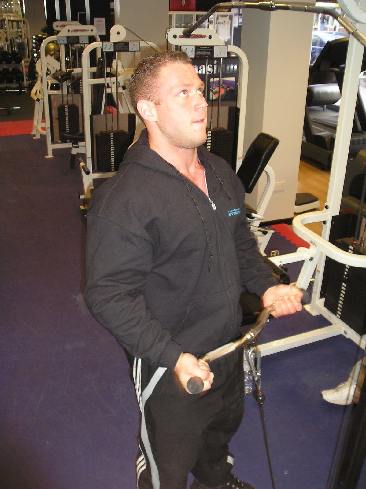 It's 4 weeks untill the NABBA Britain Finals in Southport this year, and the morning before Dave Guest was due to guest pose at the NABBA Wales, he and training partner Dan Barry dropped into Risk to train some guns... 3 exercies for biceps and 3 for tricpes, working around 3-4 sets of 8-12 reps. His diet is still mainly egg whites, chicken and brocchli at the moment. Dan Barry is also competing at the NABBA Britain finals, looking to capture the title of NABBA Junior Mr Britain again, after he won it last year at his first attempt.